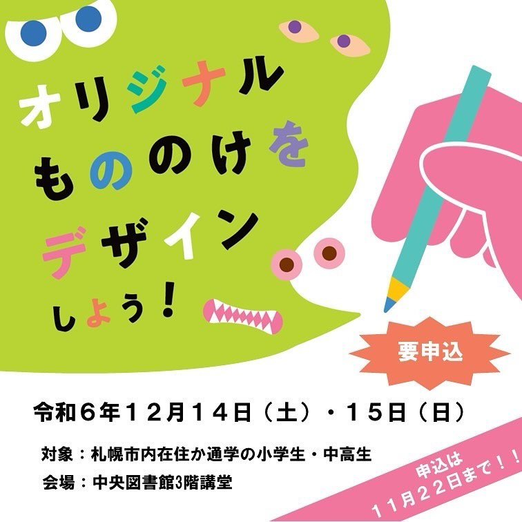 【イベント開催のお知らせ】小学生・中高生向けワークショップ「オリジナルもののけをデザインしよう!」を開催します。<小学生>12月14日(土)①10時~11時30分(9時45分受付開始)②13時30分~..