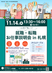 【#就職や#転職をお考えの方へ】『就職・転職お仕事説明会』を11/14(木)札幌市、11/19(火)釧路市で開催1社90秒の企業PRを見た後、気になった企業のブースで詳しい話が聞けます企業PRタイムは..