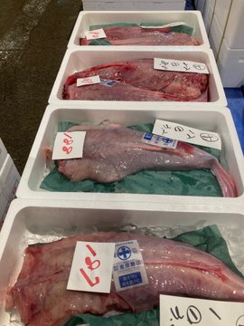 【市場フォト】北海道産のあんこうのむき身。あんこうといえば肝ですが、これから3月頃までは寒さで身が締まり、味も美味しくなる時期です。食べ方は鍋や肝和えがポピュラーですが、身のうまみを閉じ込めて美味しく..