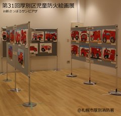 #厚別消防署からのお知らせ新さっぽろアークシティ#サンピアザ1階光の広場横の展示場にて、第31回厚別区児童防火絵画展を開催中です#厚別区内の小学校1・2年生が描いた#消防車の絵が43作品展示中です開催..