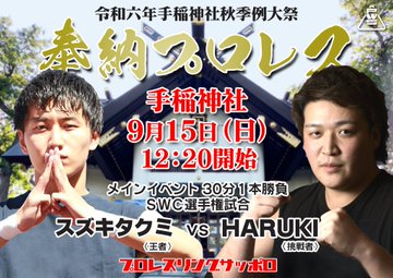 そんな我々PWSは明後日9/15手稲神社で奉納プロレス SWC選手権や新人デビュー戦など盛りだくさんの内容です 12時20分試合開始! #プロレスリングサッポロ #手稲神社 #奉納プロレス #ていねっていいね