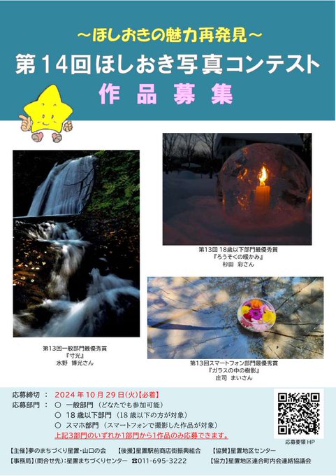 星置まちづくりセンターでは、「ほしおき写真コンテスト」(主催:夢のまちづくり星置・山口の会)の応募作品を10/29(火)まで募集しているです!星置・山口地区に関するものを撮影した作品をたくさん応募して..