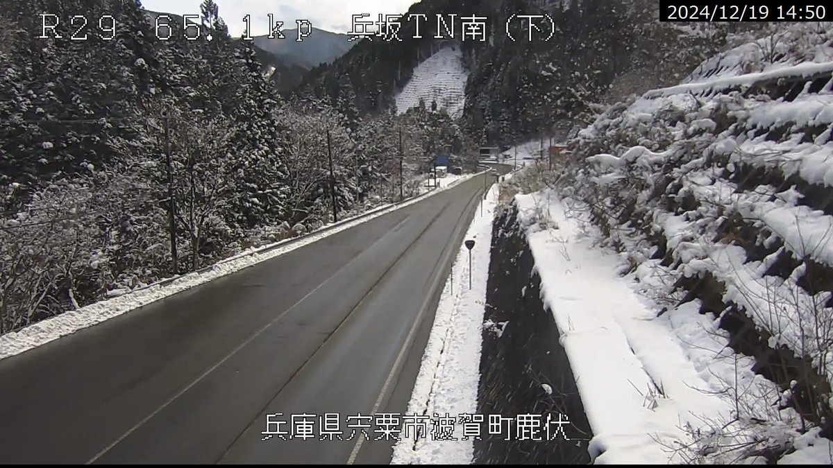 #国道29号#波賀町#戸倉峠#積雪冬用タイヤ、チェーン必要*散水融雪設備が設置されているので、実際よりも道路上の雪が少なく見えており、ノーマルタイヤでの通行は危険です。#姫路河川国道事務所ライブカメラ..
