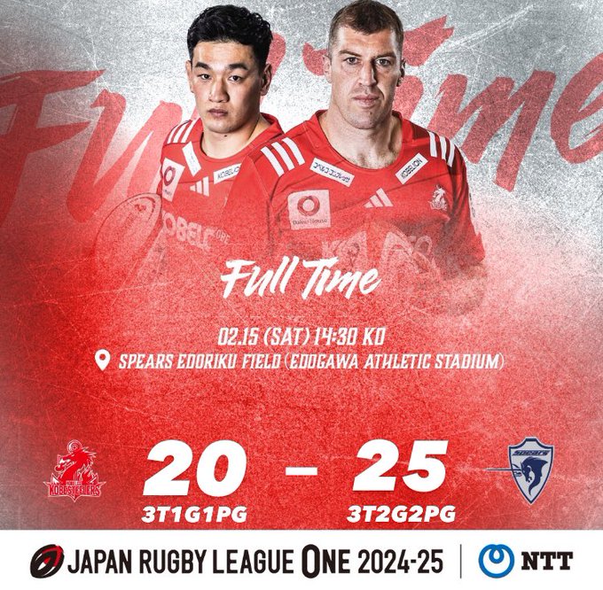 【Full Time】 ROUND8))) クボタスピアーズ船橋・東京ベイ 試合終了20-25|負| 熱いご声援ありがとうございました #KOBELCOKOBESTEELERS #コベルコ神戸スティーラーズ #RUGBY #ラグビー #NTTJAPANRUGBYLEAGUEONE #NTTジャパンラグビーリーグワン