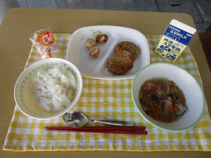 9月17日(火)の神戸市中学校給食の献立(中央区)ごはん春雨スープ里いものから揚げ平つくねの照り焼き十五夜もち給食の献立等の産地情報はhttps://kobe-gk.jp/disclosure/pro..