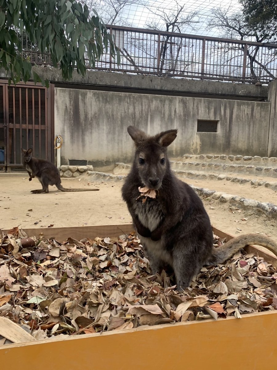 おはようございます落ち葉のプールを楽しむベネットアカクビワラビーさんモフモフでもぐもぐしている様子に癒されながら本日も頑張りましょう#王子動物園#モフ曜日