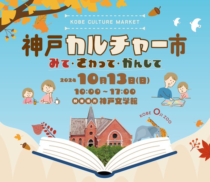 ファミリー向けイベント「神戸カルチャー市~みて・さわって・かんじて~」を10月13日に神戸文学館で開催します。 1日限定で当館裏庭を特別開放。家族連れだけでなく近隣の方も楽しめる内容です。ぜひお越しください! #神戸文学館 #神戸カルチャー市