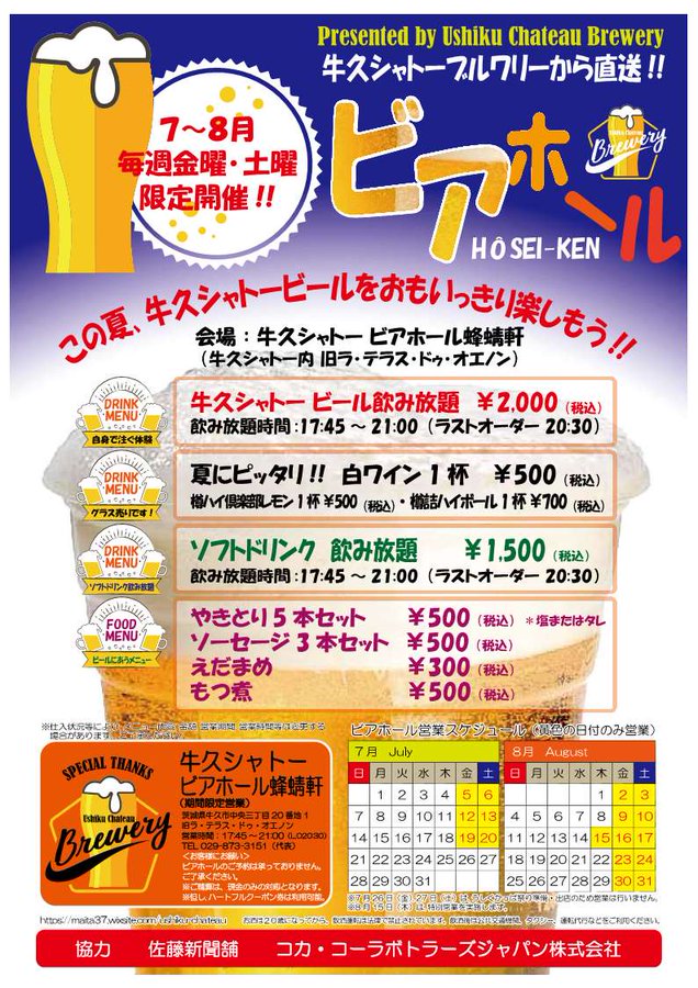 この夏は日本初のワイン醸造所#牛久シャトーで#ビールを満喫しようワインで有名な牛久シャトーに毎週金曜・土曜限定#ビアホールが出現!牛久シャトーブルワリー直送のビールを#味わうチャンスもちろんワインも#..
