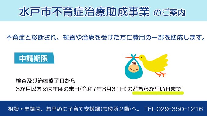 【不育症と診断された方に費用の一部を助成します!】不育症と診断され検査や治療を受けた方に費用の一部を助成します▼申請期限/検査及び治療終了日から3か月以内、もしくは今年度末日(令和7年3月31日)のど..