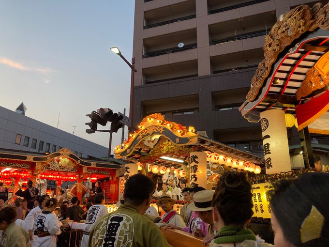 17時から、2回目の山車叩き合い!場所は南町2丁目交差点です続々と山車が出揃ってきております!