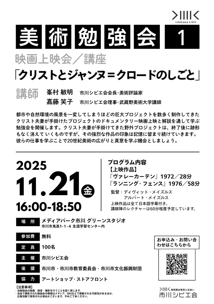 11月2日の美術シンポジウムにおいて市民からの関心と対話を受け、アートへの理解をより深める学びの機会として、今回は「包む芸術」で世界を魅了したクリストとジャン=クロード夫妻をテーマにした勉強会を開催します!