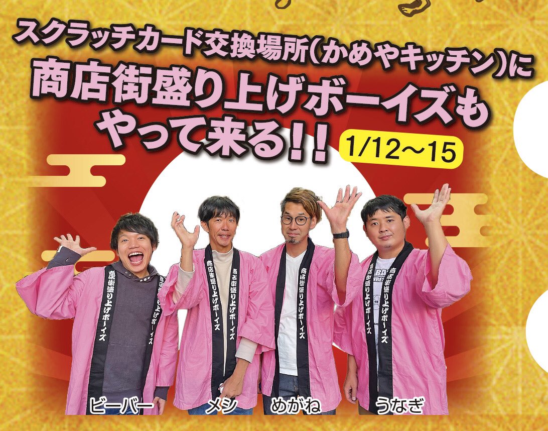 イベント期間中に商店街参加店でお買い物したレシートを指定の台紙に貼って1/12(木)〜1/15(日)に、かめやキッチンにご持参いただくとスクラッチカードと交換いたします!スクラッチカードを削って当たりが出たら板橋区内共通商品券をプレゼントいたします⭐️指定台紙は1/5より商店街事務所でもらえます