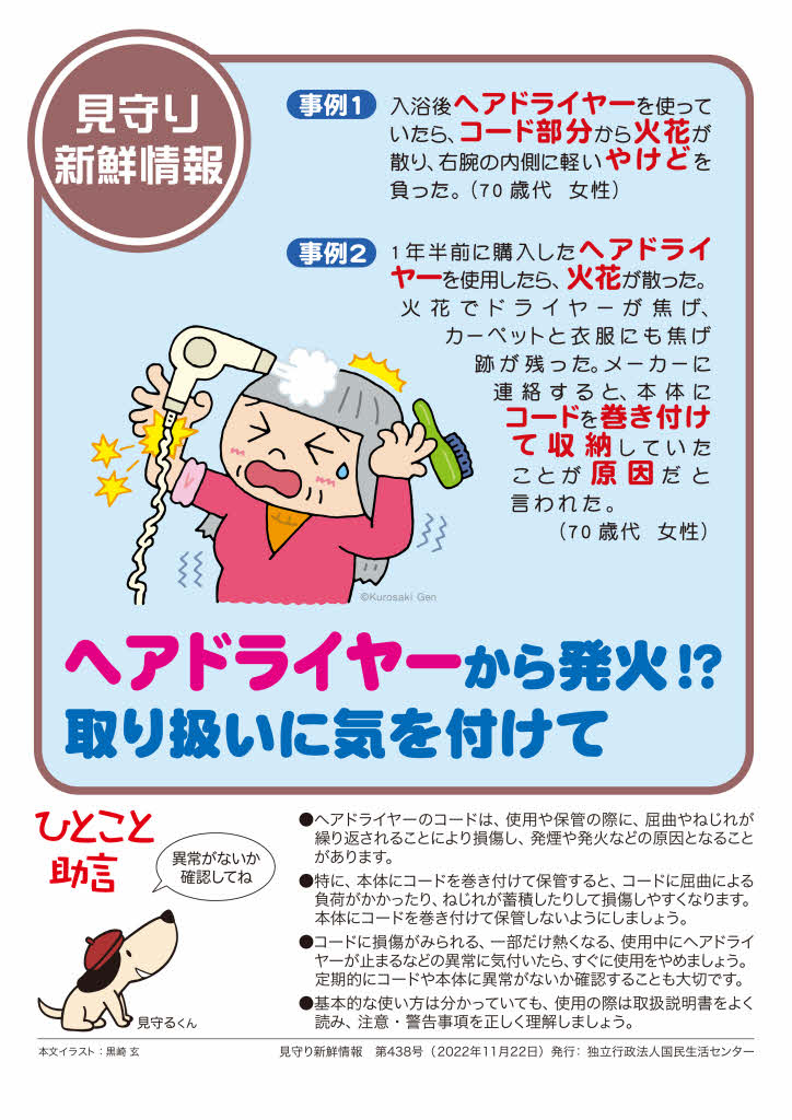 ヘアドライヤーのコードをぐるぐる巻いて使っていませんか?コードが損傷して発煙や発火などの原因になることも