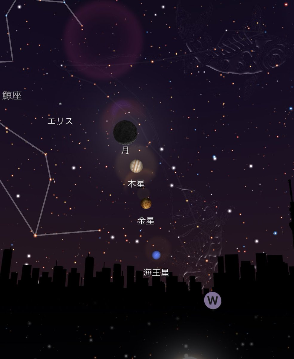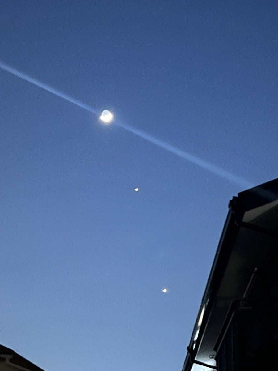 月と木星と金星が並んで輝いています。
