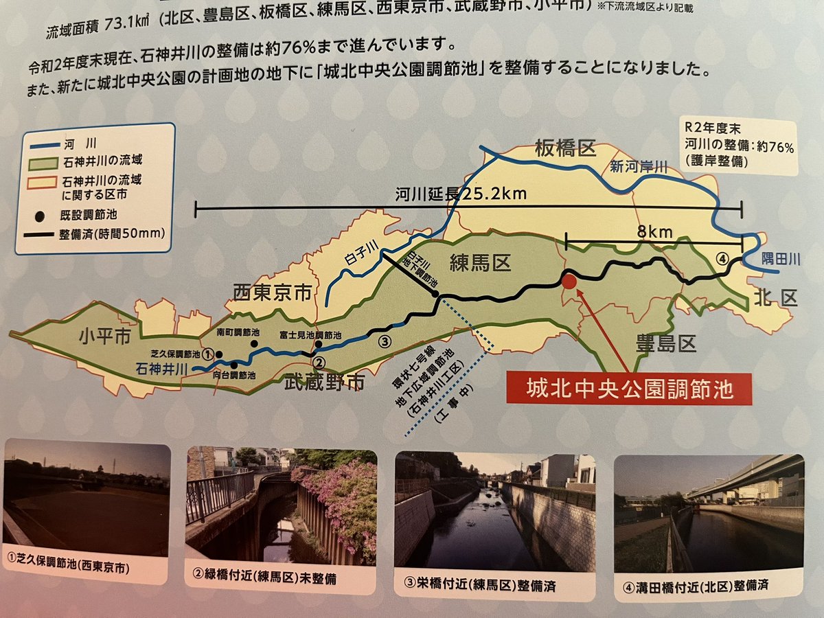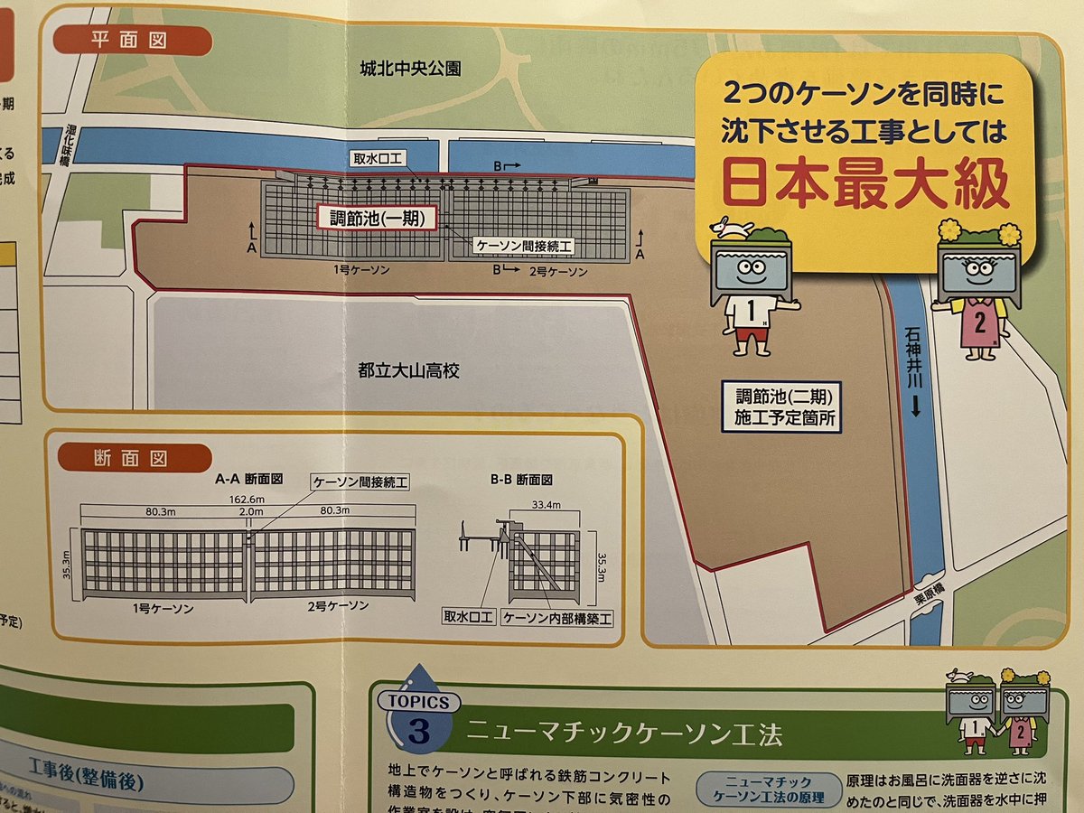 簡単に言うと、大雨が降った時に石神井川が氾濫しないように、川沿いの地中に雨水を貯められる大きなコンクリート製の箱を作っています。…