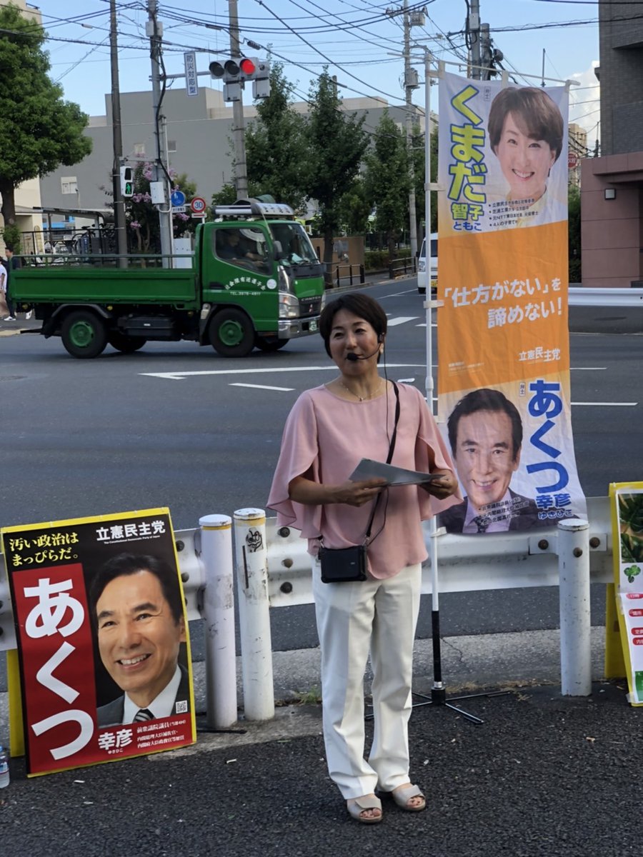 おはようございます。 今朝は志村三丁目駅付近の交差点からご挨拶。#あくつ幸彦 前衆議院議員も一緒です。ここは初めてだったので、"あれ?今日はここ?"という表情をする方がたくさんいらっしゃいました。 選択的夫婦別姓や校則のことを話しています。 #くまだ智子 #板橋 #立憲民主党