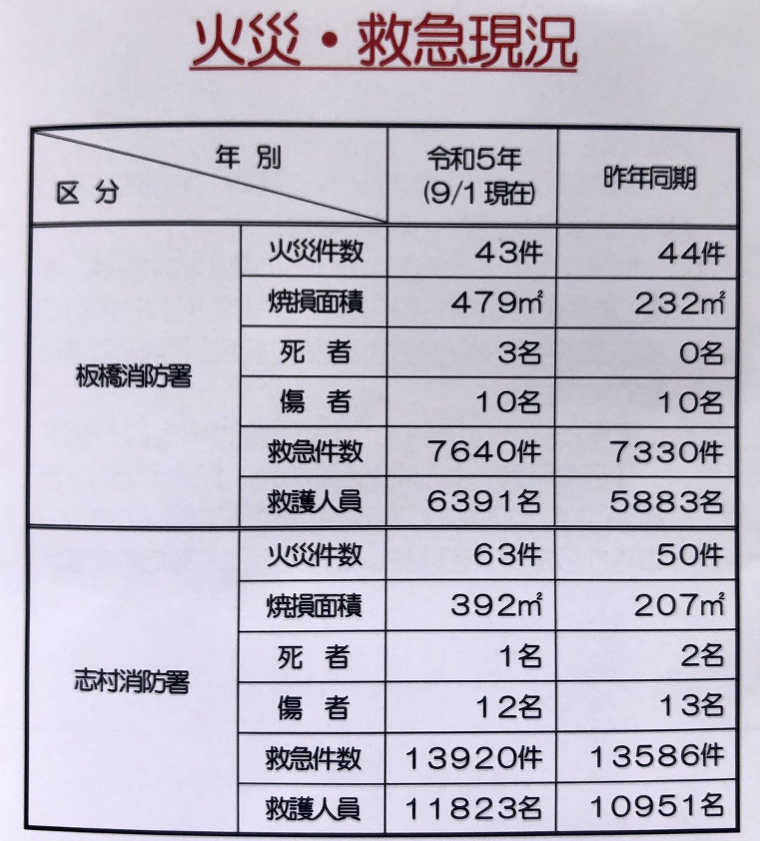 パンフレット写真のように今年は既に火災件数や死傷者数が昨年を上回るペースで発生しています