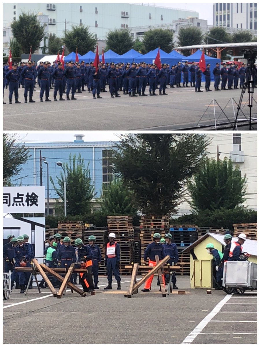 倒壊家屋からの救助訓練、AED活用、地域連携の放水消火活動が展開されました