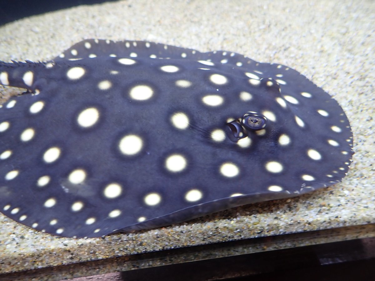 企画展示の「エイ展」が11月12日まで開催中です。7種類のエイの生態展示のほかシルエット・エイクイズもあります。チャオちゃん以外のエイが見られる機会ですので、ぜひお越しください。