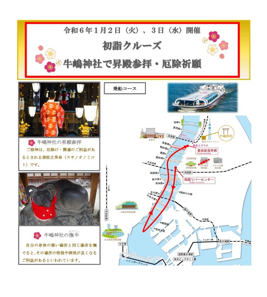 東京水辺ライン新春のイベントクルーズ情報 初詣クルーズ 牛嶋神社で昇殿参拝・厄除祈願/東京都