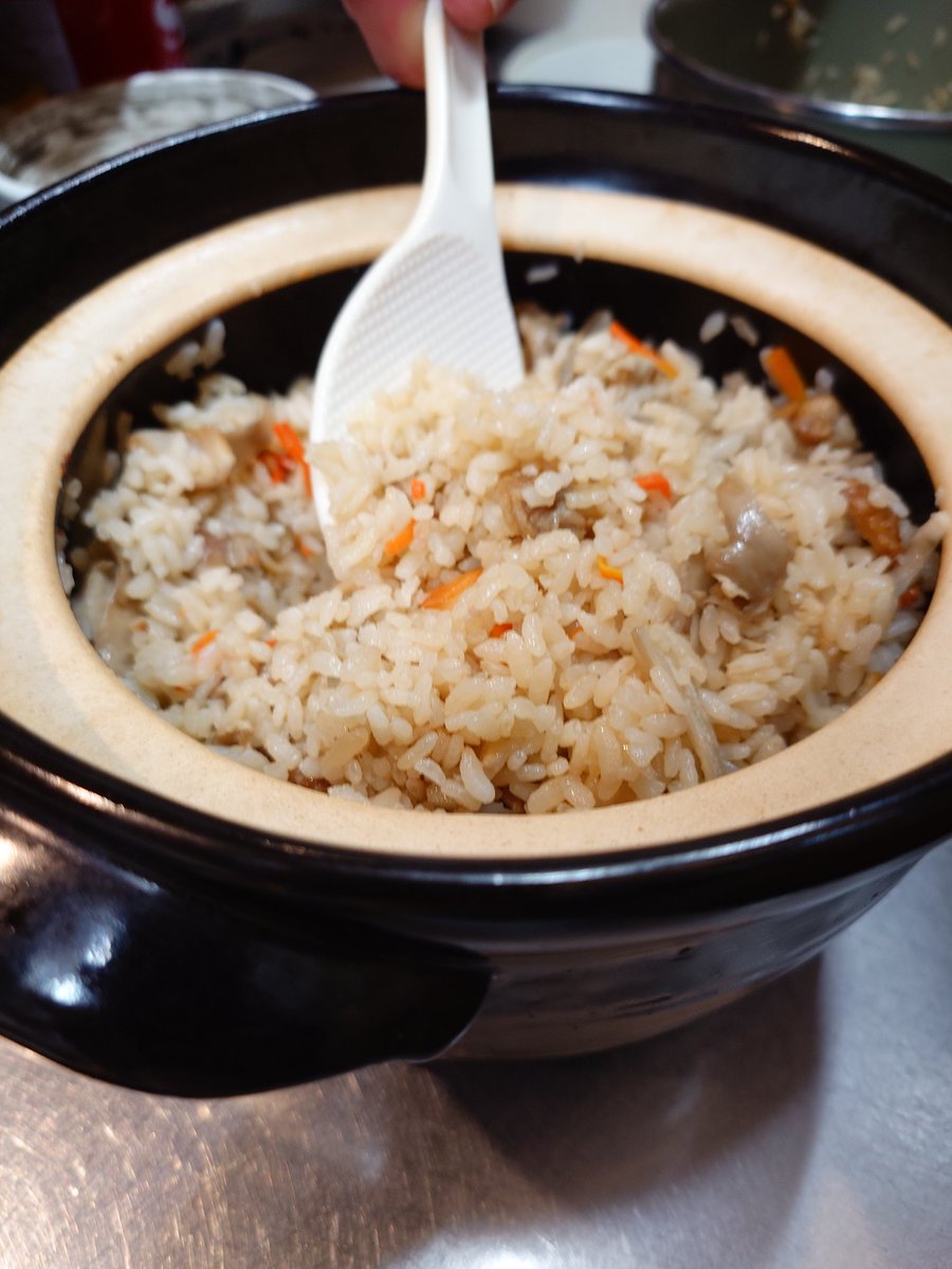 福島県川俣軍鶏で出汁を取って土鍋で炊き込みご飯をご用意しました!〆にぜひどうぞ🎵