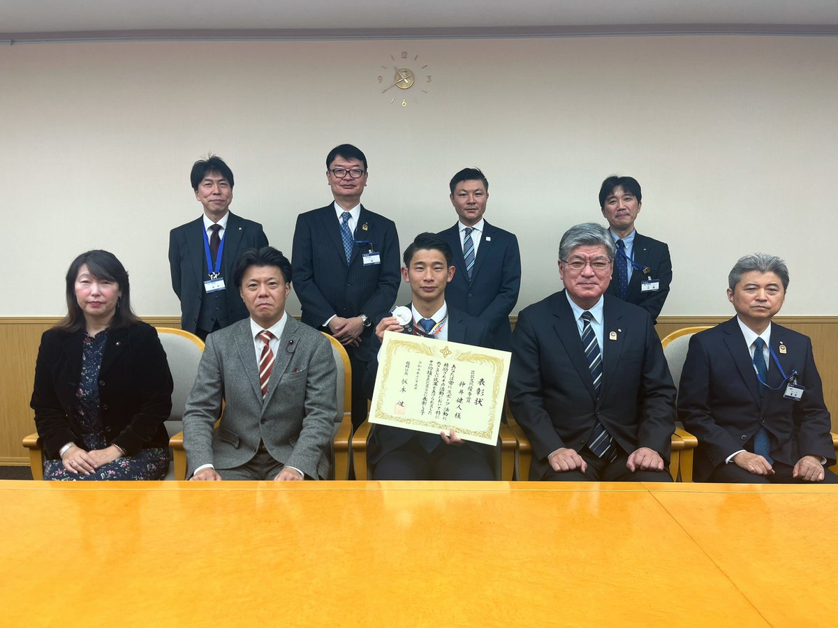 デフサッカーワールドカップで日本初の準優勝を遂げた日本代表選手、板橋区民でもある仲井健人選手が区役所に表敬訪問に来てくれました。