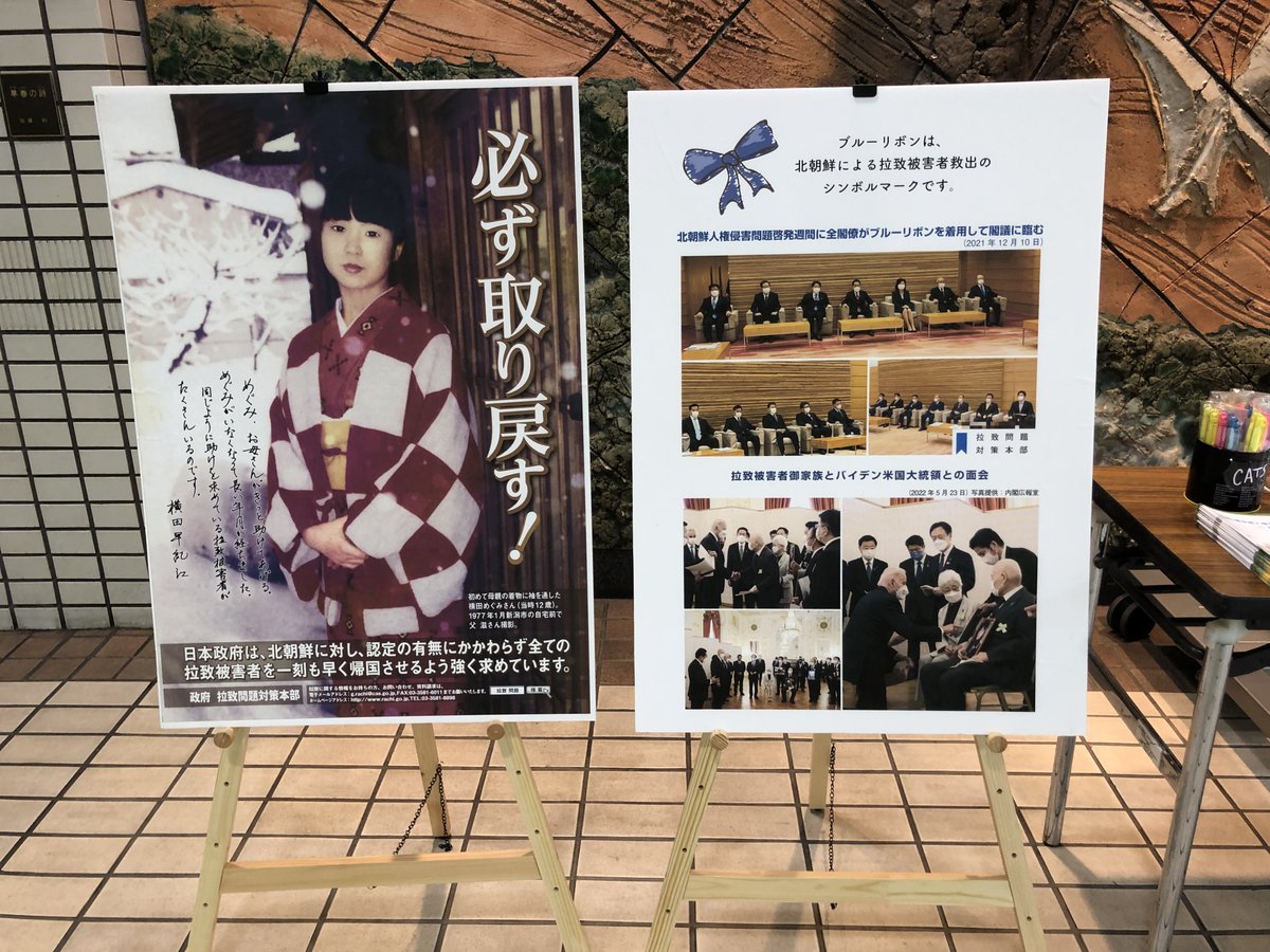 板橋区では、12月12日(月)~12月16日(金)の期間、区役所の1階において啓発展示を行います。パネルの展示の他、拉致問題啓発アニメ等のDVD放映も行いますので、是非足をお運びください。