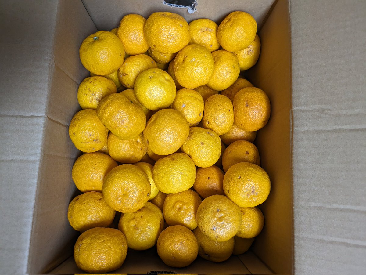 こんにちは。今日は穏やかに晴れています。明日、12月21日(木)に柚子湯を行います。営業時間は朝11時から夜11時迄(女性は10時半迄)です。柚子が埼玉県毛呂山町から届きました。都内の浴場は高知産の柚子を使うのが大半ですが板橋区は毛呂山町との友好で香りが荒々しい武州柚子を使います