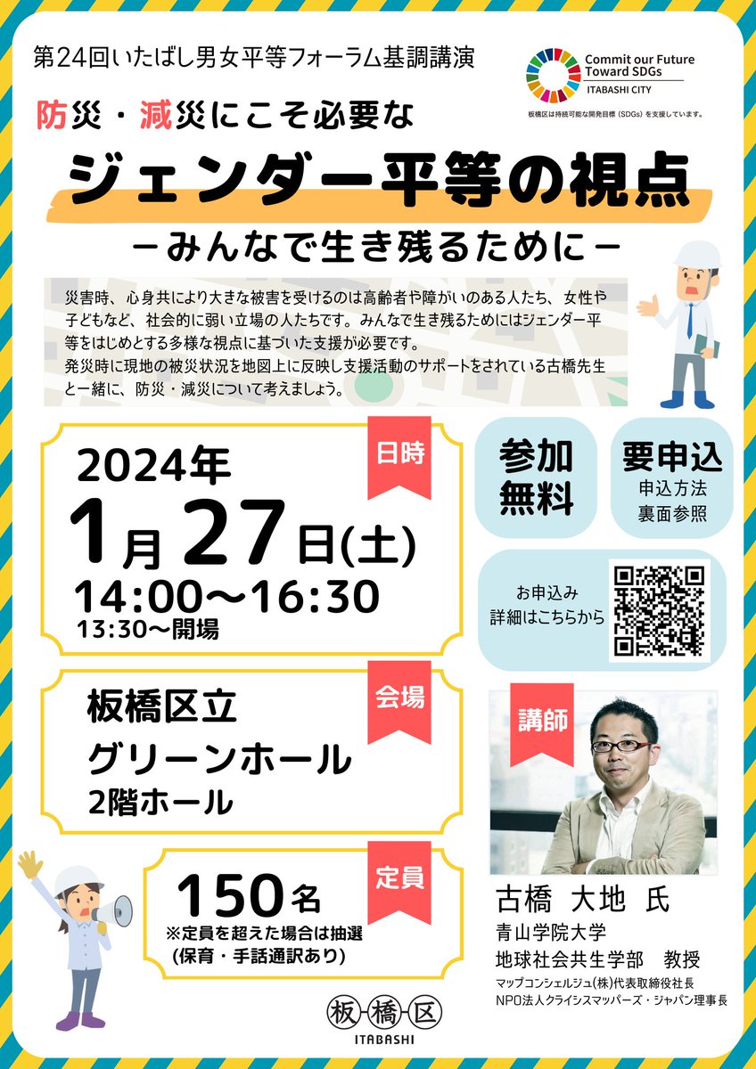 みんなで生き残るためにはジェンダー平等をはじめとする多様な視点に基づいた支援が必要です。防災・減災について一緒に考えてみませんか。