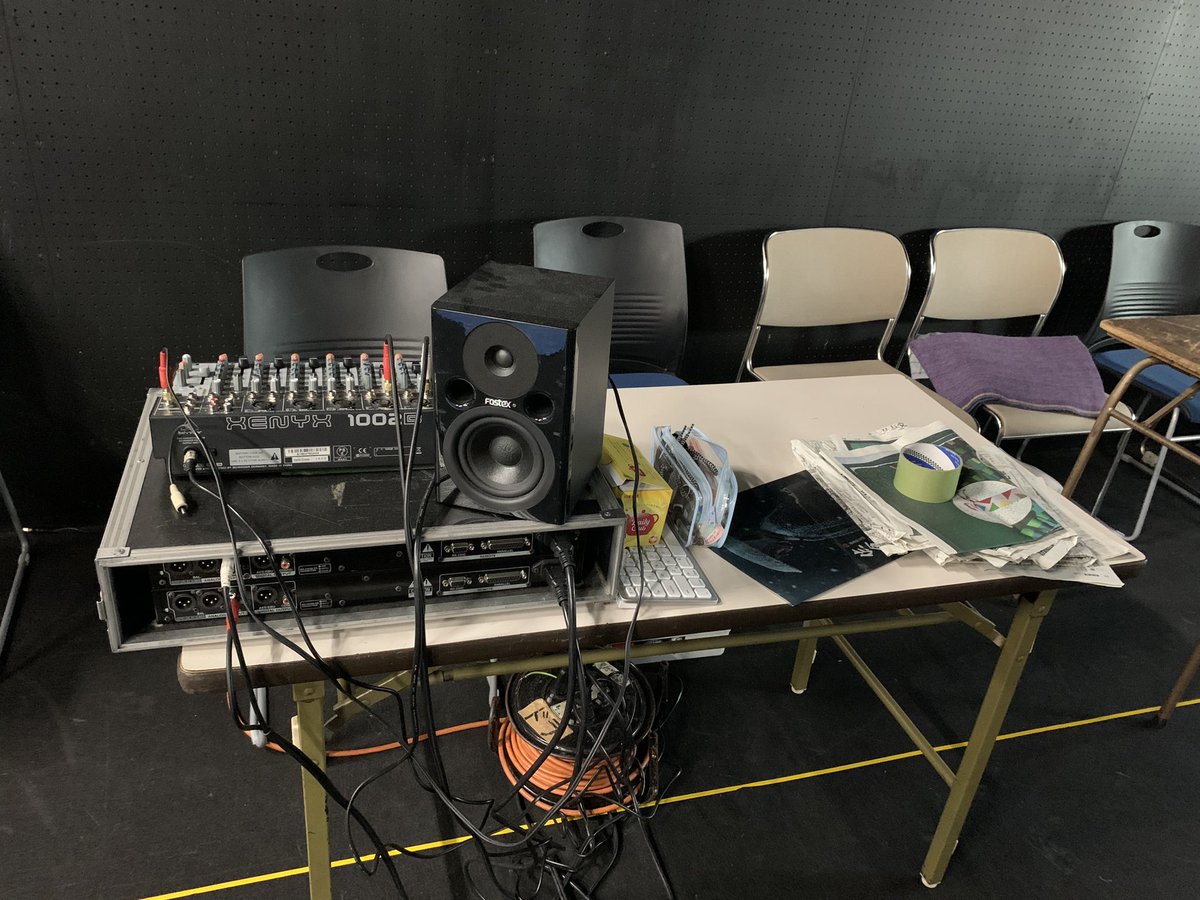 「ふしぎな木の実の料理法」稽古場稽古はお休み。演出助手の琴乃ちゃんが座ってるお席です。音響さんが入るまでは音楽も出してくれてます。演出家の言う言葉も漏れなく聞いてます。すっごいお仕事です。琴乃ちゃん、もうちょっとしたら紹介します。