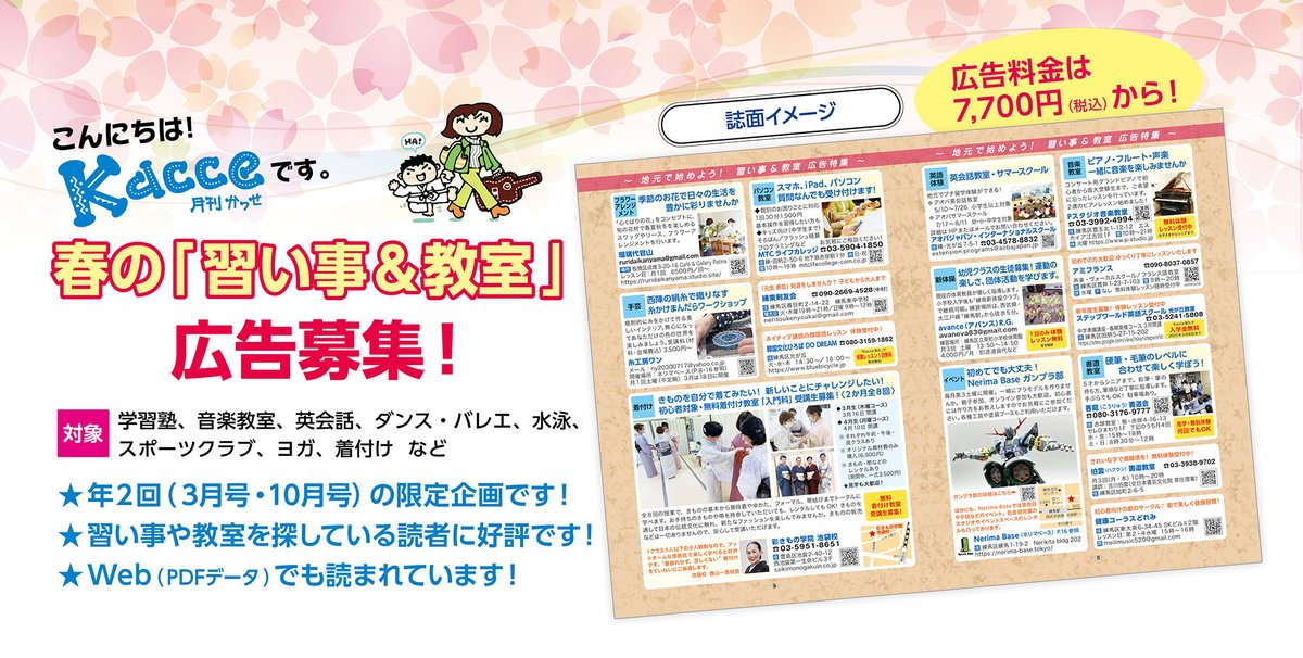 【「習い事&教室」広告募集中〜締切まだ間に合います!】 月刊Kacce3月号(3月1日発行)恒例の「習い事&教室」広告特集です。 練馬・板橋の地域の皆さんに向けた告知や宣伝などにぜひご活用ください😊 詳細はこちら→ #板橋 #練馬 #習い事 #Kacce