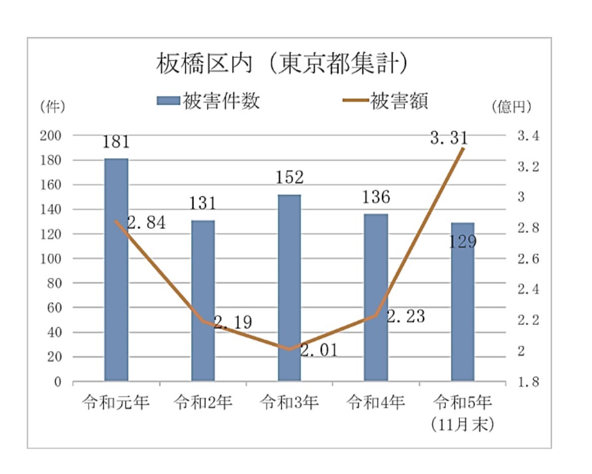板橋区特有の問題は、他区と比較してもより顕著な1件あたりの被害額の高額化。