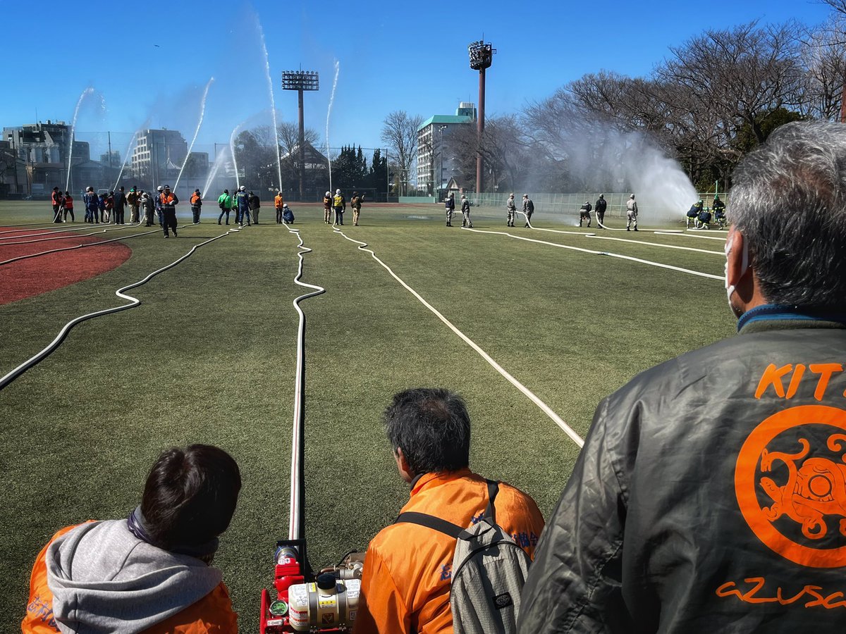 今日の防災訓練は区内の22箇所で同時に開催されていて、小豆沢グランドではアマチュア無線やドローンも活用しての訓練。