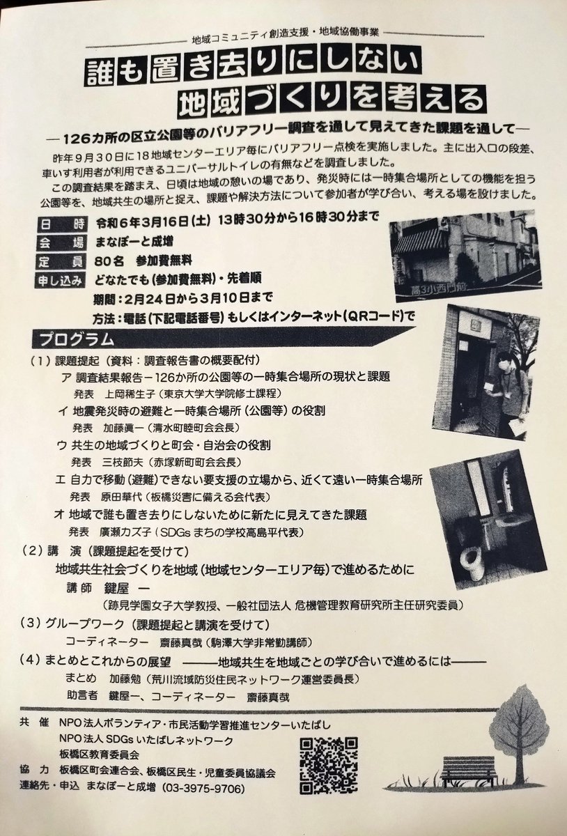 災害時の要支援者の支援に関する課題を話し合う「誰も置き去りにしない地域づくりを考える」に参加。