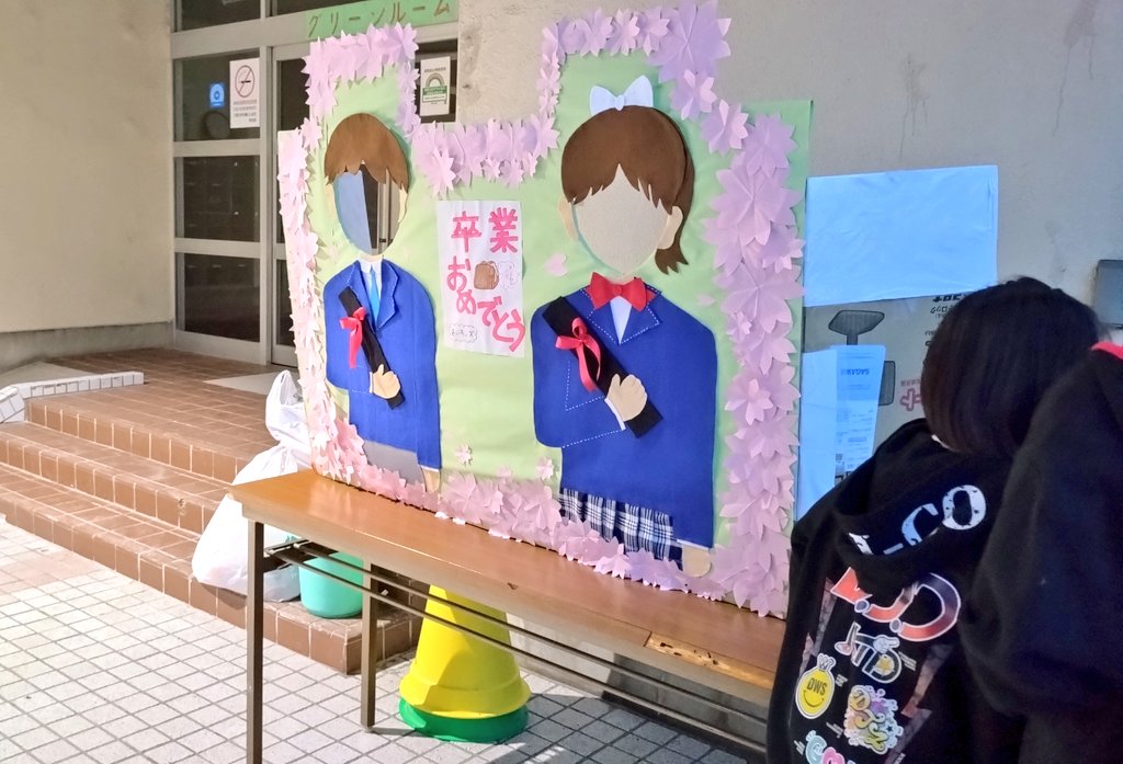 卒業式とはまた違った雰囲気でのお祝いの場。式終了後に、私服で集まれるのはいいね!