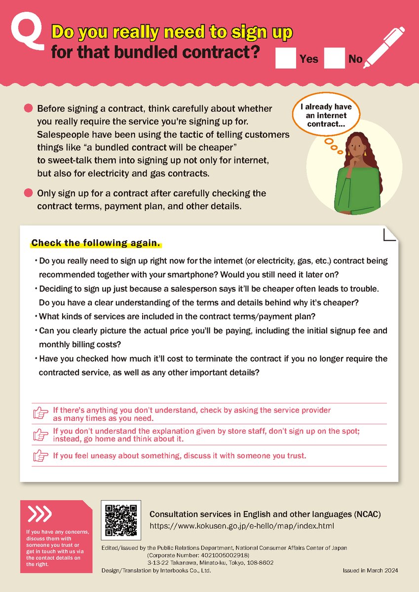 よくある消費生活のトラブルについて、多言語で注意点を紹介しています。