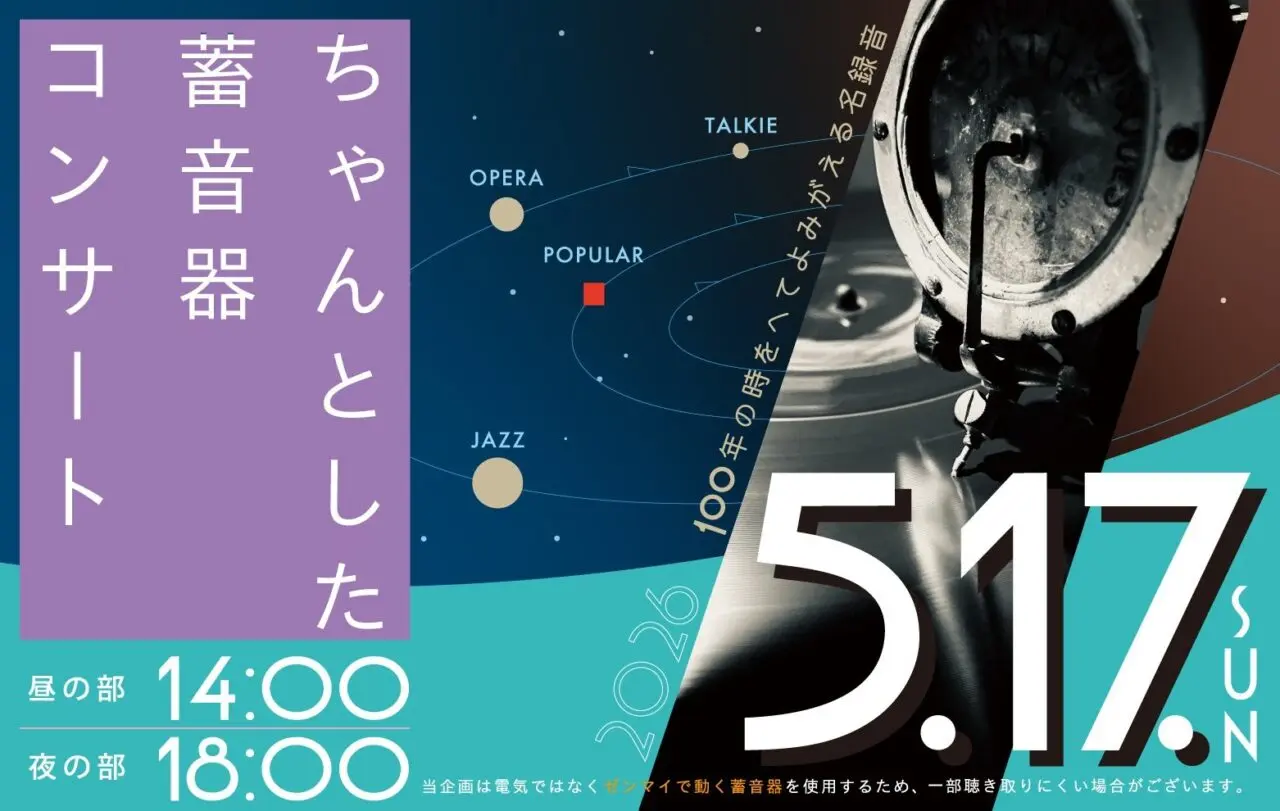 板橋区立教育科学館で、2026年5月17日(日)に「プラネタリウム『ちゃんとした』」が開催されます。100年前の蓄音器を使用した、貴重でロマンあふれる音楽体験ができる注目のイベントです。本イベントで