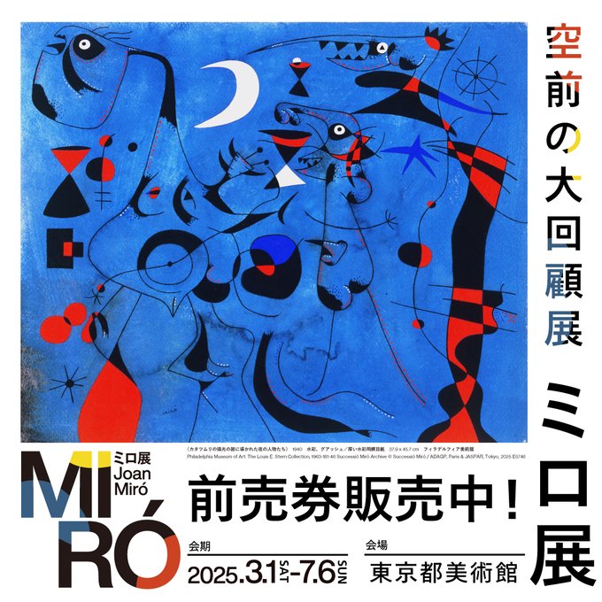 \前売券発売中/ミロのすべてがここに。初期から晩年まで、空前の大回顧展!ミロ展3月1日(土)〜7月6日(日)当日券より200円お得な前売券の販売は、2/28(金)まで。どうぞお忘れなく!https:/..