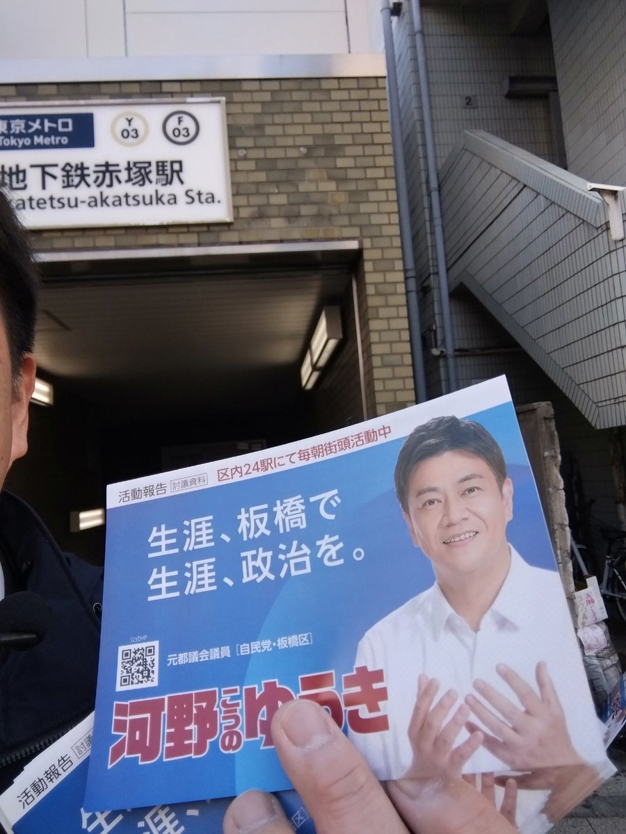 今朝は#地下鉄赤塚駅にて街頭活動でした。区内24駅(30ケ所)街頭第3周目4日目。朝はまだ肌寒いです。今日も一日お気をつけてお出かけください。#七夕決戦🎋に向けて!003