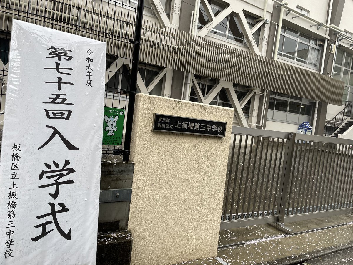 上板橋第三中学校の入学式に出席しました。 家族の母校ですが、その頃より人氣で、ほぼ毎年抽選入学、今年は生徒数がグンと増えたとの事です。 😷が多いのが氣になりますが、笑顔溢れる中学校生活となることをお祈りします。 入学おめでとうございます!㊗️