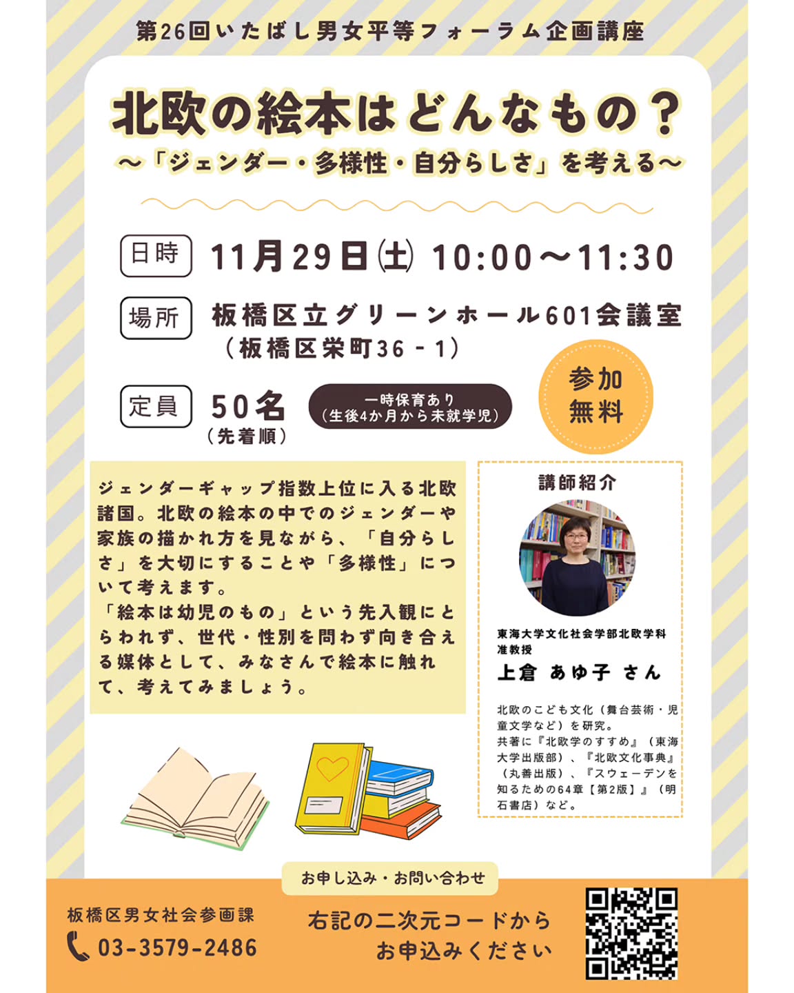 北欧の絵本はどんなもの?~『ジェンダー・多様性・自分らしさ』を考える~」講座参加者募集中!男女共同..