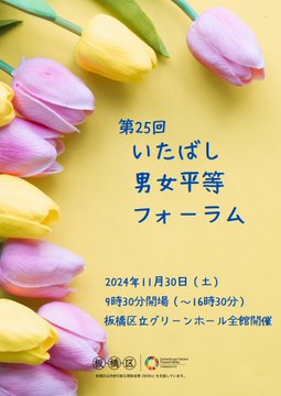 第25回いたばし男女平等フォーラムまであと11日!日時:11月30日(土)9時30分開場(~16時30分)会場:区立グリーンホール全館開催詳細・申込は区公式HPhttps://city.itabash..