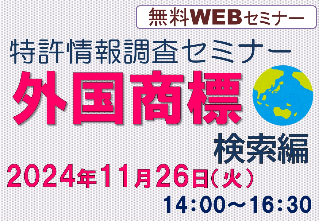 /特許情報調査セミナー【外国商標検索編】開催迫る\申込期限は11/25(月)正午まで効果的な#外国商標出願や外国のデータベースの活用について実習をしながら学んでいきます#無料#WEBセミナーの詳細はこ..