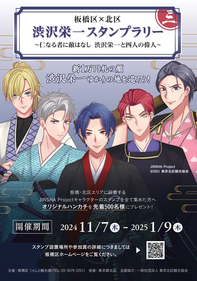 「板橋区×北区渋沢栄一スタンプラリー」開催中!渋沢栄一のゆかりの地を巡るスタンプラリーに是非ご参加ください!5か所全てのスタンプを集めた方にはコンプリート賞としてオリジナルハンカチをいたばし観光センタ..