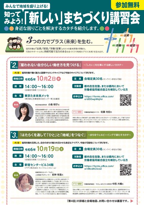 #協同労働による#新しい法人格の設立手順や#組織運営を知りたい方必見!11月16日の『新しい』#まちづくり講習会にぜひご参加ください。都内で労働者協同組合を設立した方からの貴重なお話も伺えます!記事は..