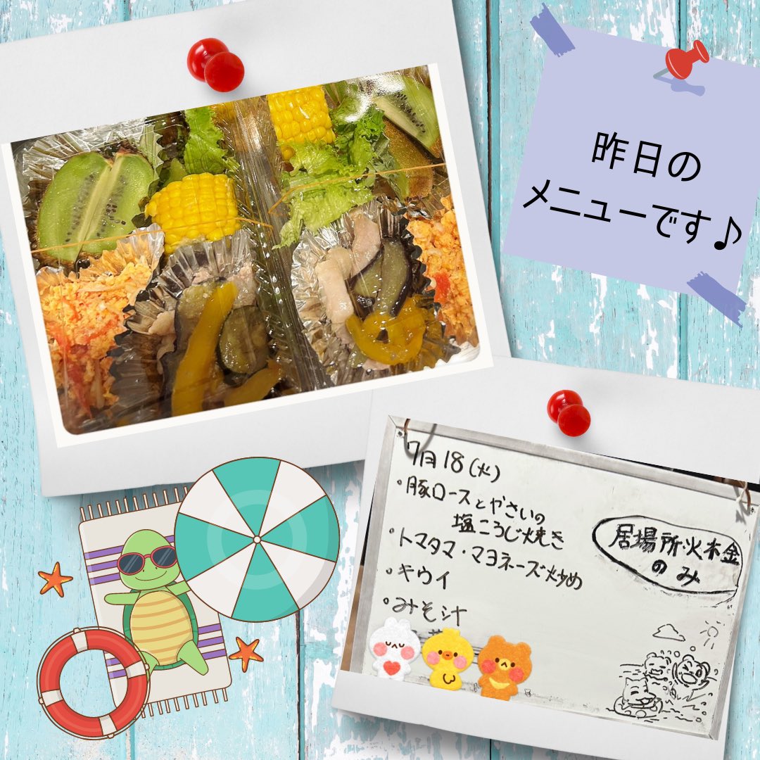 おはようございます😃7/18のメインは、豚ロースと野菜の塩こうじ焼きでした🥢塩こうじには、沢山の栄養が含まれています🌈皆さんも、ぜひご賞味ください✨ちなみに、7/18は、防犯の日👮備えあれば、憂いなし..