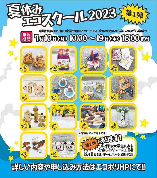 エコポリスセンターです!夏休みエコスクール2023第1弾の受付は19日16時で終了しました。お陰様で大変多くの皆様にご応募いただきました。【当選メールの発送について】はこちらitbs-ecopo.jp..