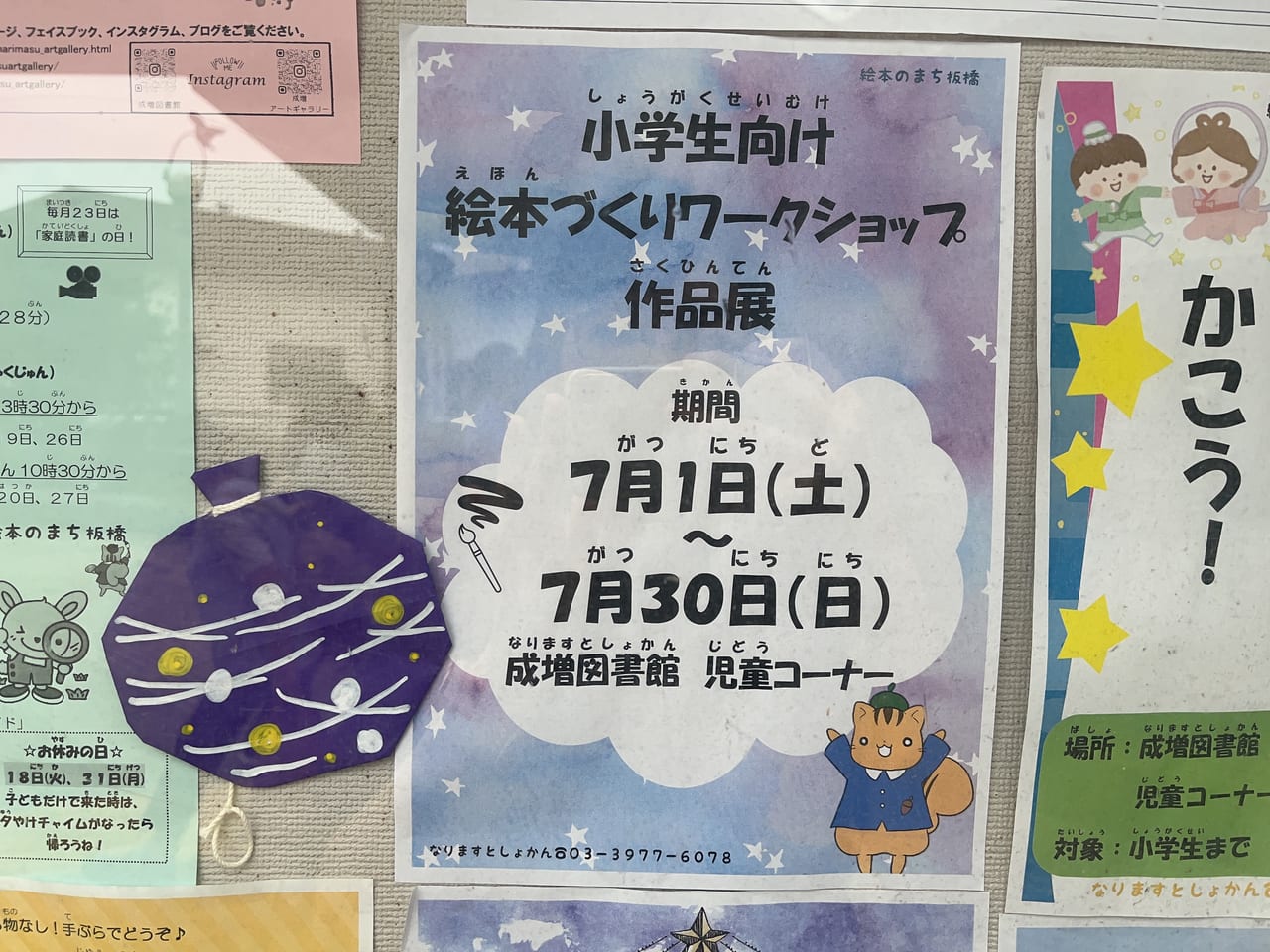 板橋区立成増図書館でこども向けイベントがたくさん!絵本作りワークショップ、こわ~いおはなし会、ペーパークラフトワークショップなど。気になるイベントに足を運んでみてはいかがでしょうか^^2023年7月