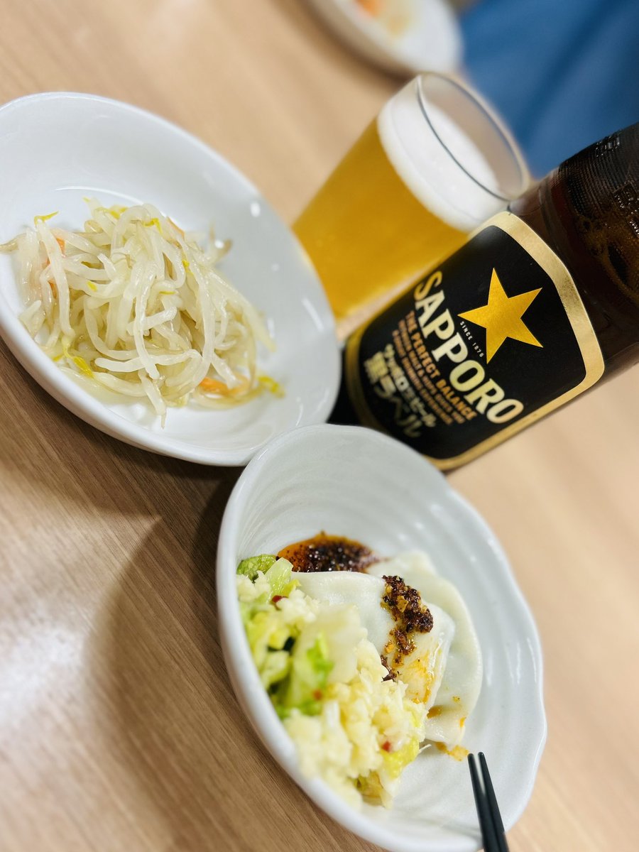 今日のお昼はちょっと足を伸ばして板橋駅近く 四川中華 粒粒香 さん ランチメニュー 汁なし坦々麺 エビチリ(ご飯、スープ付) 水餃子食べ放題 サッポロビール 久しぶりでしたが辛くて美味しかったー 水餃子3回おかわりした😆 #粒粒香