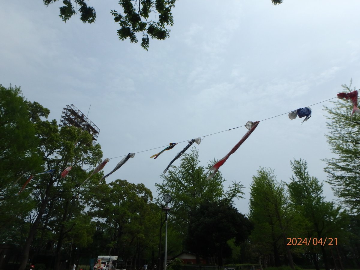【#季節の風物詩】#こいのぼりの高揚午後から強風の予報です。突風の発生にもご注意ください。#城北中央公園0117